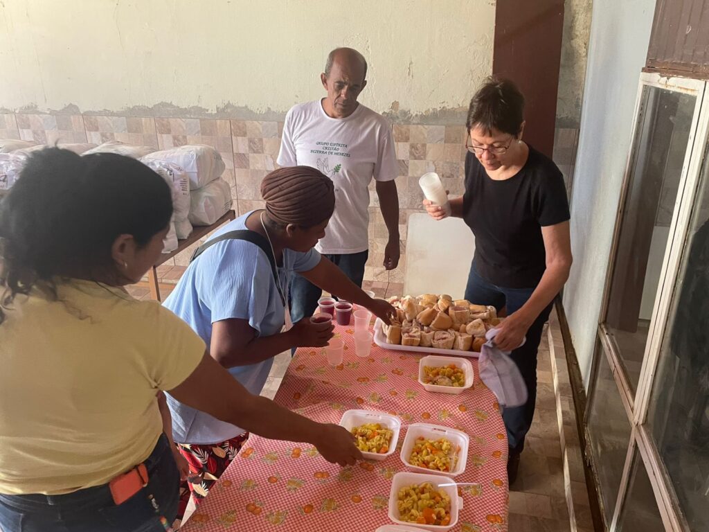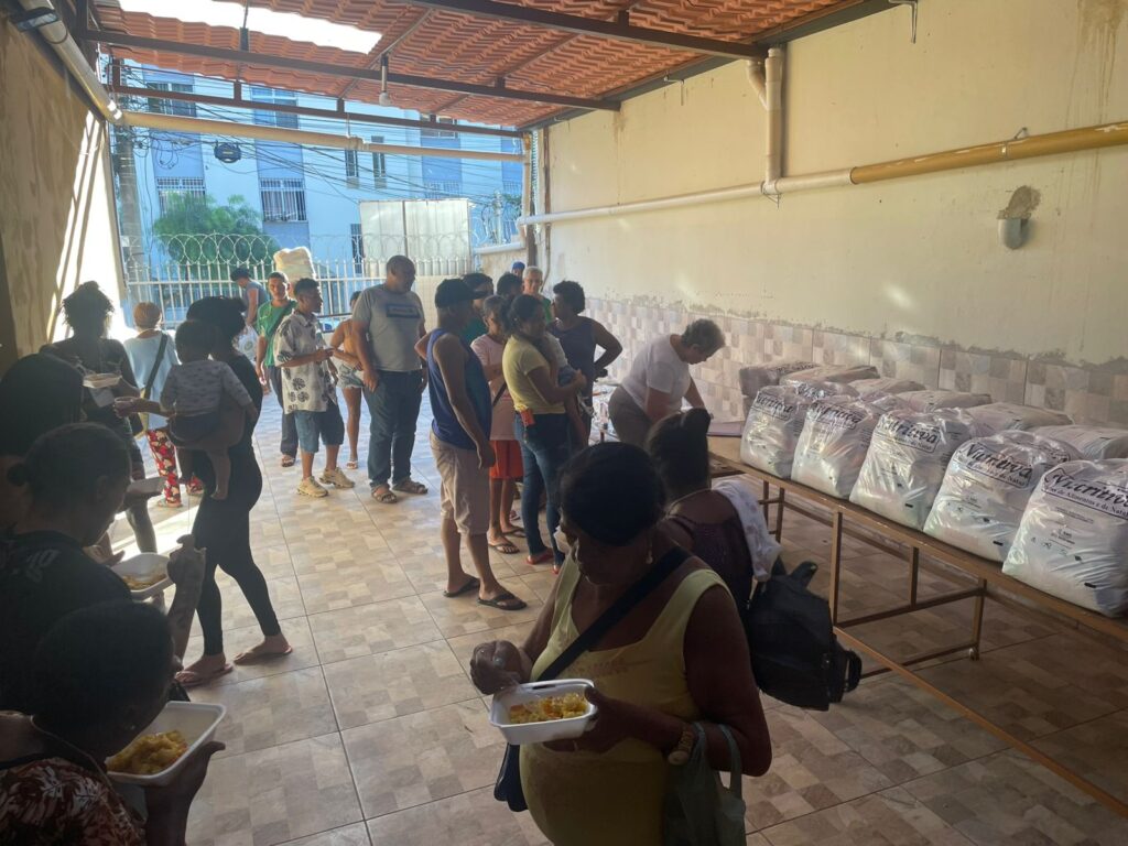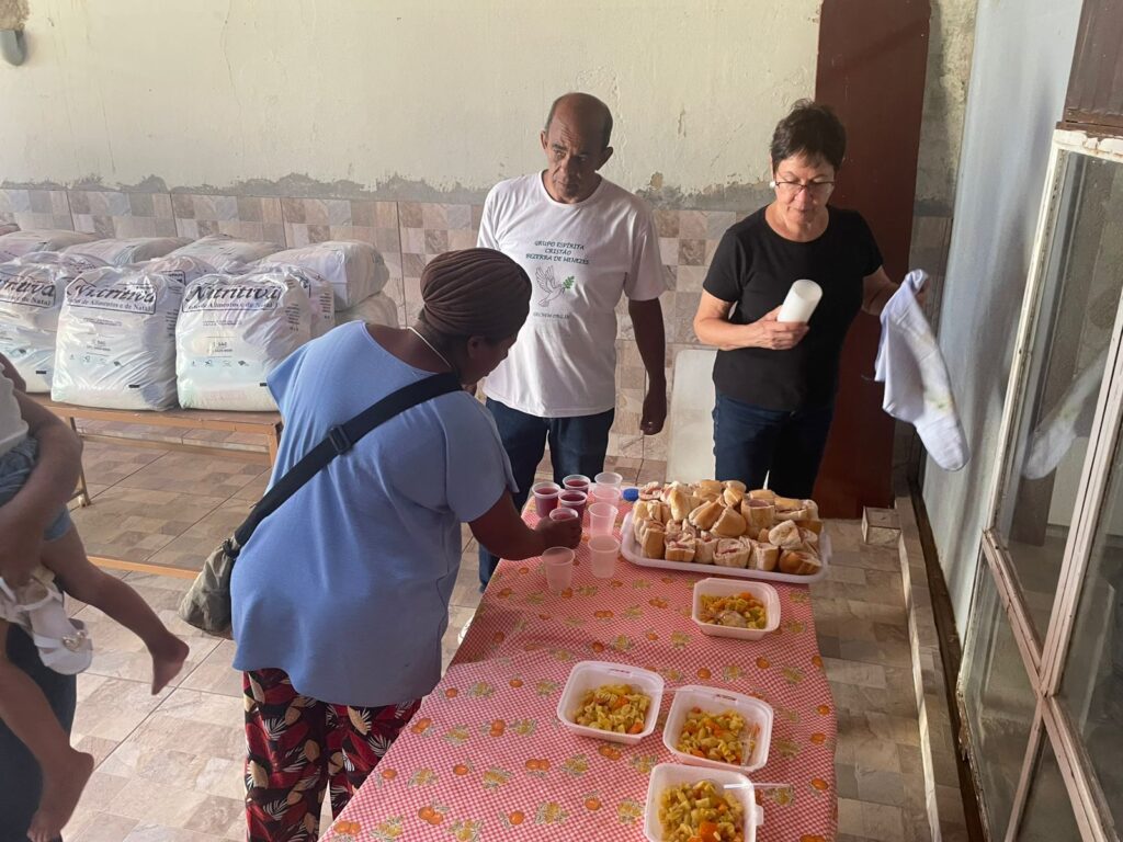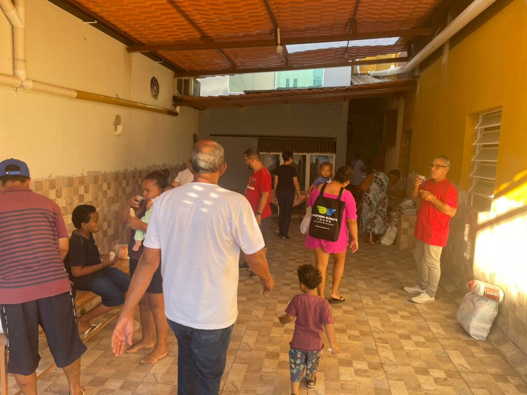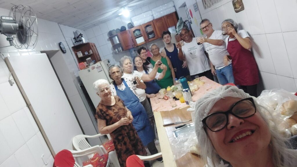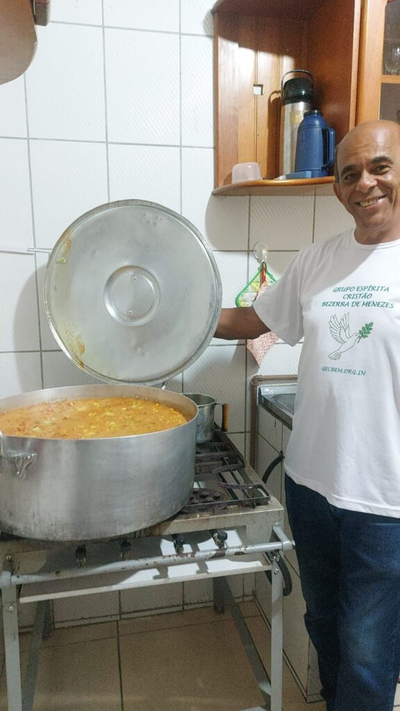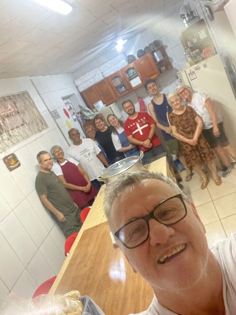 O trabalho de caridade se expande para além das nossas paredes. Enquanto as atividades ocorrem no salão, nossos dedicados tarefeiros preparam e distribuem a sopa para os irmãos em situação de rua. Este é um momento de contato direto com o próximo, onde cada concha servida carrega o desejo de consolo e a prática do “Amai-vos uns aos outros”.